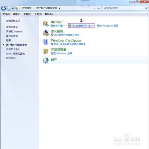 打开控制面板后,您会看到一系列的选项。在左侧导航栏中,找到并点击“用户账户和家庭安全”选项。