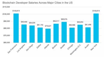 1. 薪资水平: 欧洲区块链前端开发人员的平均基本工资为每年70,000美元,范围在45,000美元到100,000美元之间。 在中国,区块链招聘工资收入一般月薪在20,000到50,000元人民币之间,年薪在24万到60万人民币之间。2023年较2022年下降了9%。 区块链相关职位的平均年薪约为30万人民币起。