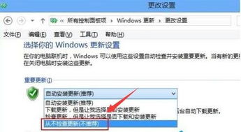 - 将“重要更新”设置为“从不检查更新”,这样电脑就不会再弹出更新提示了。